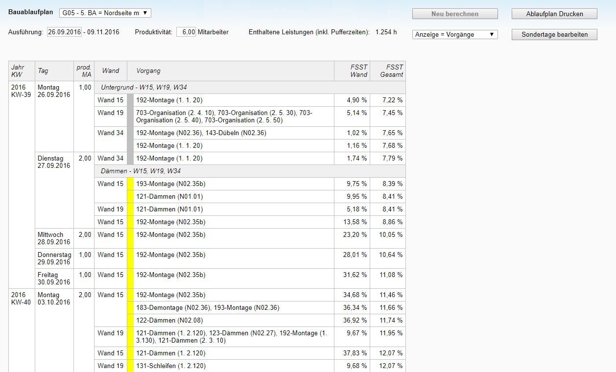 Der Auftraggeber erhält realistische Termine je Wand, Bauabschnitt und für das gesamte Bauvorhaben